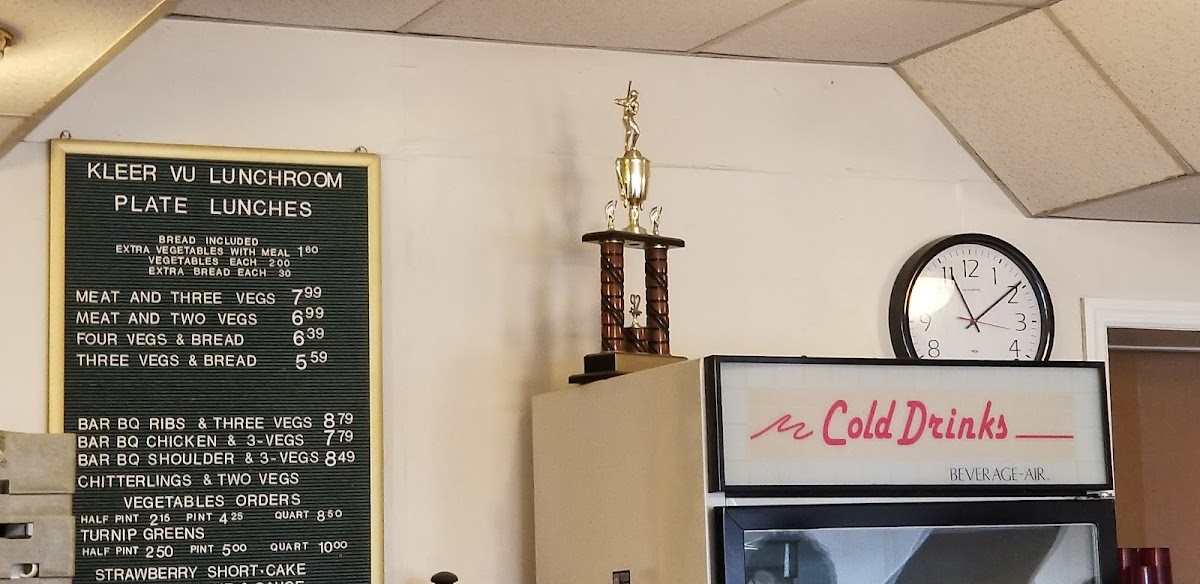 Welcome to Kleer-Vu Lunchroom, where comfort food meets Southern hospitality! Located at 226 S Highland Ave, Murfreesboro, TN, our menu is a delightful journey through classic flavors that will satisfy both your cravings and your soul. Don't miss out on our famed Fried Chicken, perfectly paired with sides like creamy Mashed Potatoes and savory Collard Greens. For those with a sweet tooth, our Peach Cobbler and Chess Pie are the perfect indulgence to wrap up your meal. Whether you're in the mood for our hearty Meatloaf, tender Ribs & 3, or a classic Double Cheeseburger with crispy Fries, there’s something for everyone on the Kleer-Vu Lunchroom Menu. Come savor the tastes that keep our customers coming back for more!